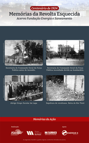 Bem-vindo à visualização virtual da Exposição Centenário de 1924: Memórias da Revolta Esquecida, promovida pelo mandato do deputado Maurici, em parceria com o Museu da Energia de São Paulo. A exposição, realizada de 7 a 21 de junho na Alesp, apresenta imagens do acervo do Museu da Energia de São Paulo e do acervo histórico da Alesp.